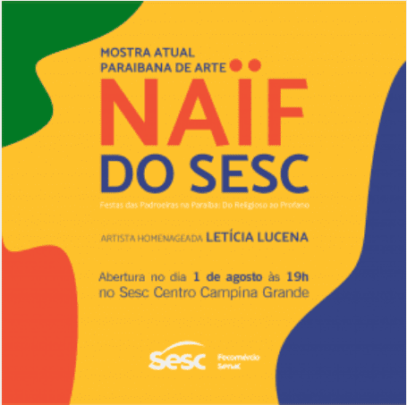 A mostra paraibana de Arte Naif chega a Campina Grande neste mês de agosto. A vernissage ocorre nesta quinta-feira (1), a partir das 19h na Galeria do Sesc Centro Campina Grande. A exposição seguirá durante o mês com visitação gratuita, das 8h às 18h. Também está disponível para visualização virtual no site sescpb.com.br.
