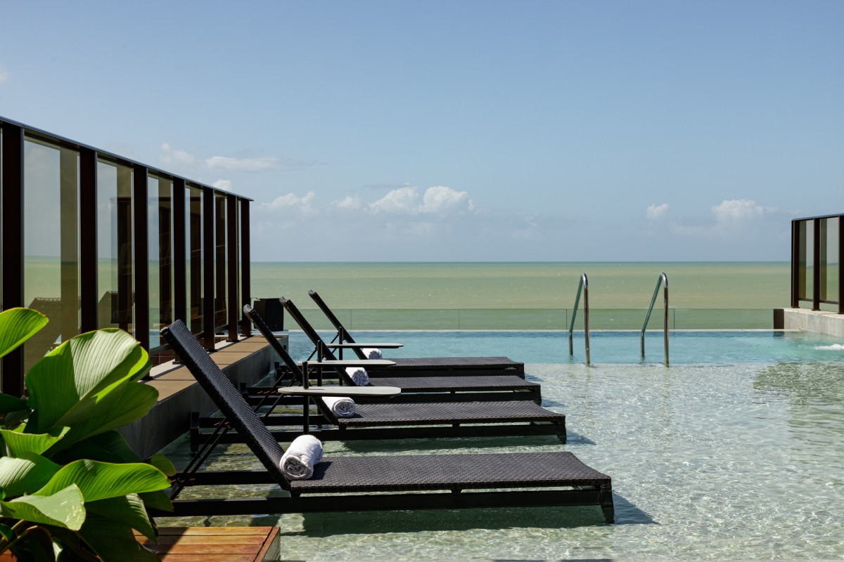 A proposta se estende também à gastronomia e aos espaços de convivência. O Restaurante Mero integra a experiência com uma cozinha que valoriza ingredientes e referências do litoral, em um ambiente que privilegia encontros à mesa com leveza e identidade. Já o Uçá Rooftop se apresenta como uma vista aberta para a cidade, e o mar acompanha a coquetelaria autoral e uma atmosfera que transita entre o fim de tarde e a noite.