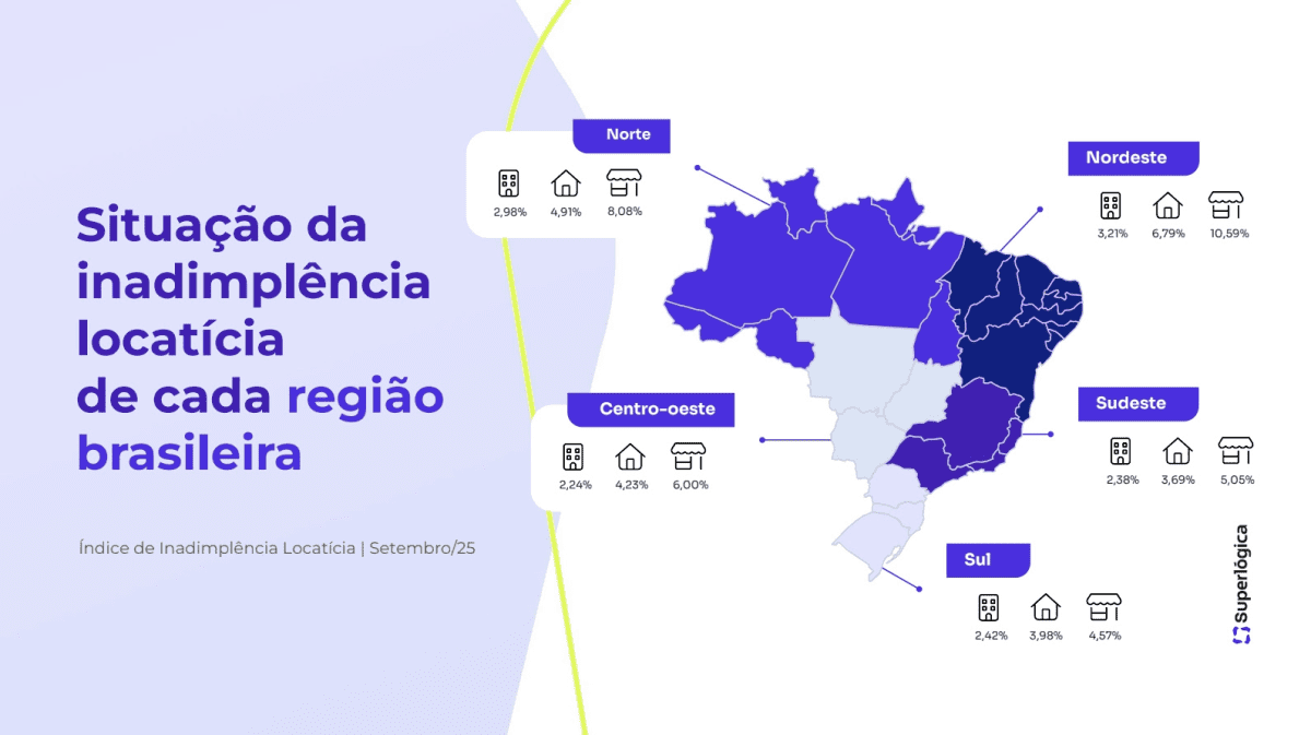 A taxa de inadimplência de aluguel no Brasil voltou a crescer em setembro, chegando a 3,80%, a maior taxa dos últimos 16 meses. Em julho e agosto, um movimento raro foi registrado, com a taxa estacionando em 3,76%, até então a maior dos últimos 14 meses. Quando comparado com o mesmo período de 2024 (3,14%), a taxa apresenta uma alta de 0,66 ponto percentual. Os dados são do Índice de Inadimplência Locatícia da Superlógica, principal plataforma de soluções tecnológicas e financeiras para o mercado do morar.