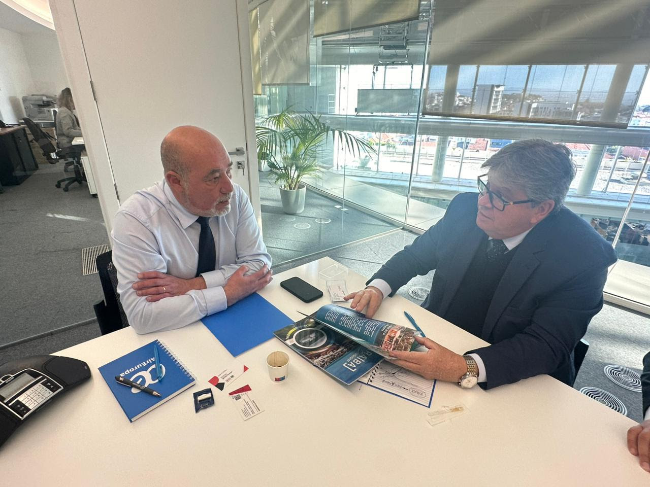 O governador João Azevêdo reuniu-se em Lisboa, Portugal, nesta terça-feira (27), com José Mínguez, gerente nacional da AirEuropa, para discutir a viabilidade de estabelecer voos da Paraíba para a Europa.
