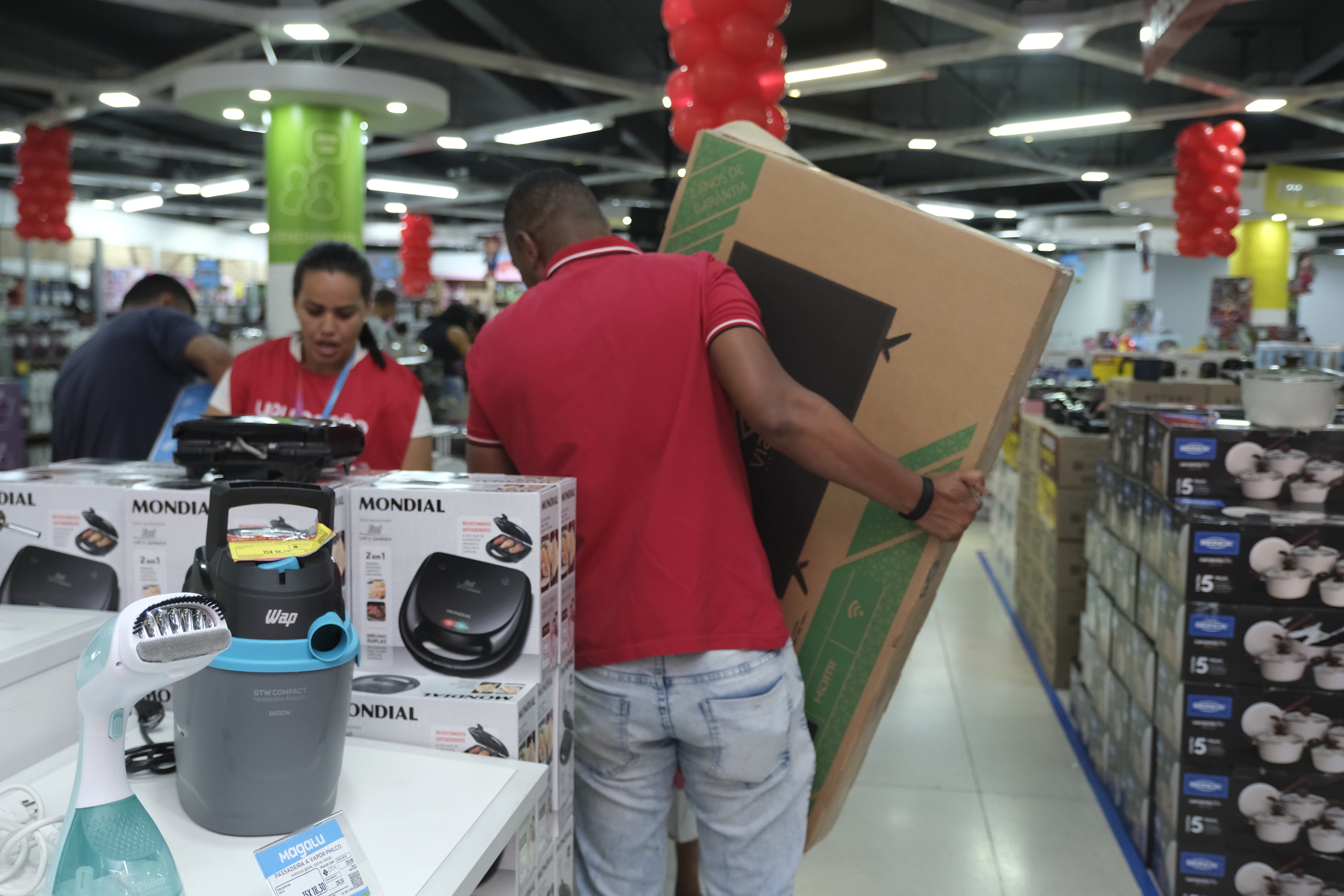 Várias horas antes da abertura, a loja que fica na Marginal Tietê, na capital paulista, já tinha clientes à espera para realizar seu sonho de consumo. Assim que as portas foram liberadas, a correria foi grande em busca do item de desejo. Panela de pressão, lavadora de roupa, geladeira, air fryer, travesseiro, colchão, smartphone e smart TV estão entre os produtos mais procurados pelos consumidores por conta dos preços baixos.